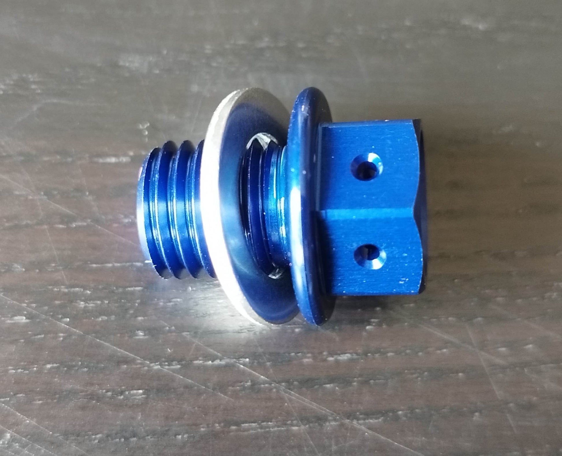 Bouchon de vidange aimanté Kitaco M12 x 14mm - filet 1.5. P - en aluminium anodisé bleu.