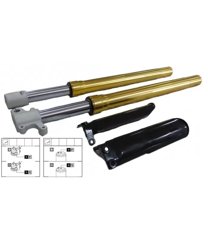 Fourches avant MARZOCCHI copie de haute qualité fabriquée avec les mêmes composants que l'original, avec tous les réglages (compression et détente) pour les modèles de pit bike IMR, MALCOR, YCF, THUMPSTAR....