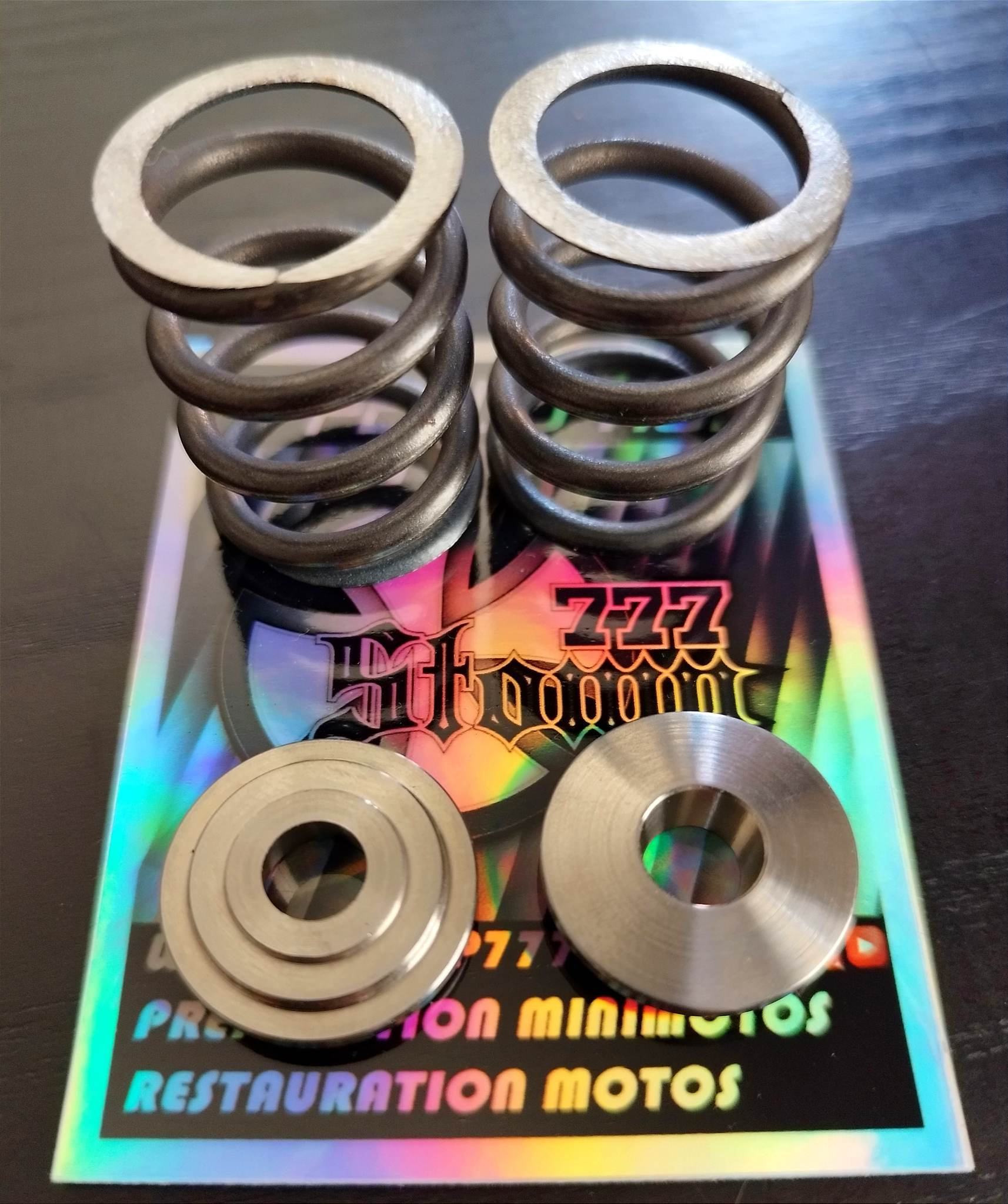 Ce kit repousse le point d'affollement des soupapes et diminue les poids des masses mobiles de la culasse. Il permet d'améliorer considérablement l'allonge du moteur et par la même occasion la fiabilité.