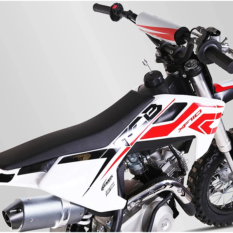 La pitbike XF110 est ce qui se rapproche le mieux d'une mini moto de motocross avec son moteur en 110cc et sa boite de vitesse semi-automatique, c'est un vrai plus pour l'apprentissage du motocross.