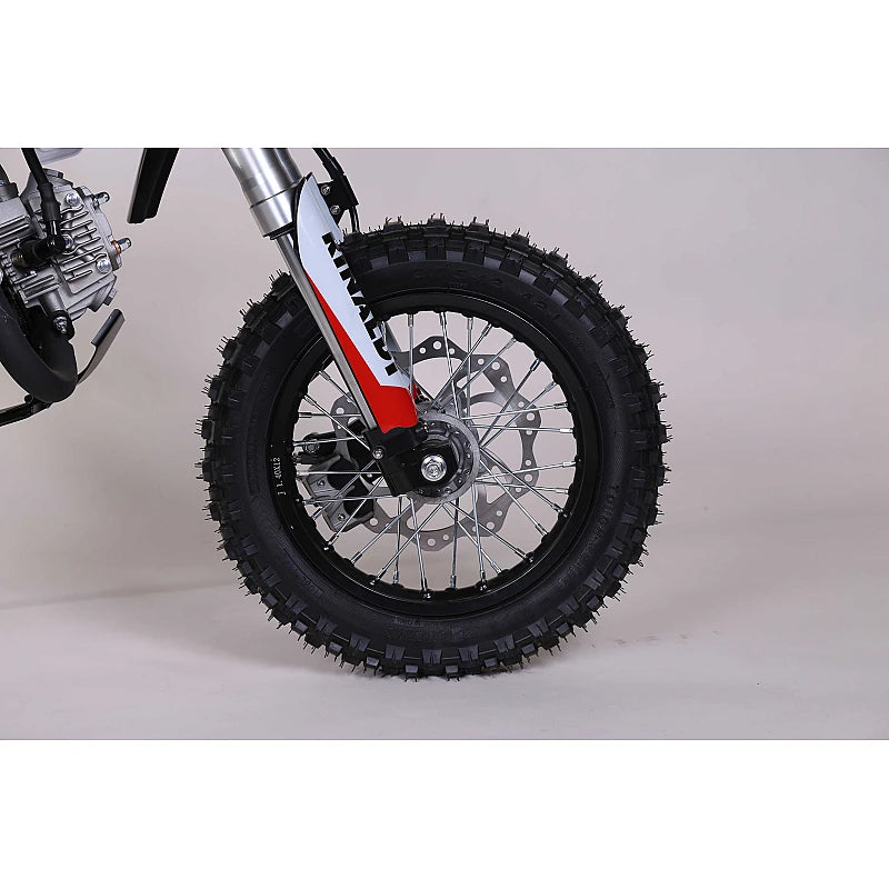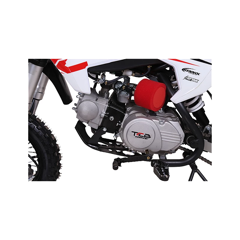 La nouvelle dirt bike TCB BIIKE XF110 a été développée pour les jeunes à partir de 8 ans, c'est un modèle aboutit avec une partie cycle solide, cadre en acier. La poignée d'accélérateur est équipé d'une vis pour brider la puissance.