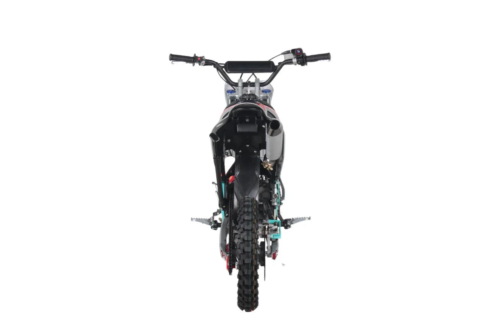 Ce système est appelé " Progressive Link" et avec un débattement de 9,8" de la roue arrière, le nouveau amortisseur. Cadre acier inspire confiance et donne aux pilotes beaucoup d’aisance sur le pilotage tout en conservant la position du repose-pied vers l'arrière, ce qui permet une bien meilleure maniabilité par rapport aux autres pitbike du marché.